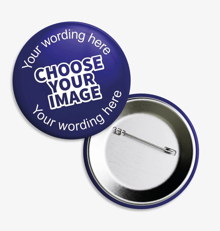 Metal button badges are strong and durable badges made with a metal base and a high-quality printed front, usually covered with a protective glossy layer.