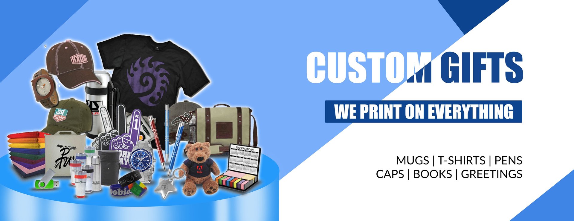A vibrant display of custom printed mugs with colorful designs arranged neatly on a wooden shelf.A vibrant display of custom printed mugs with colorful designs arranged neatly on a wooden shelf.