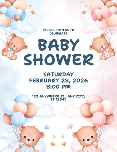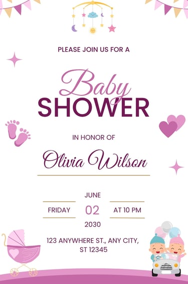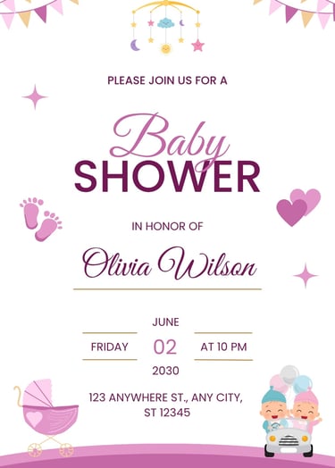 Celebrate the joy of welcoming a new life with beautifully designed baby shower invitation cards. Crafted with soft colors, adorable themes, and elegant layouts, these cards set the perfect tone for your special day. Personalize them with your details to create a warm and memorable invite for your loved ones.