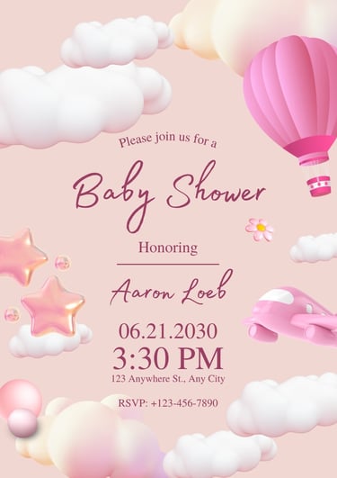 Announce your baby shower in style with creative and elegant invitation cards. Featuring modern designs, gentle color palettes, and high-quality finishes, these invitations add a personal touch to your celebration. Perfect for sharing your excitement, they beautifully invite friends and family to be part of your joyful occasion.