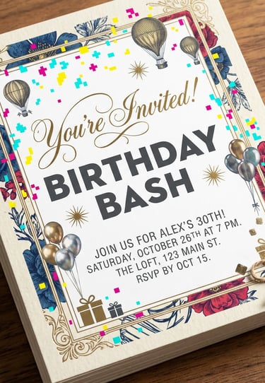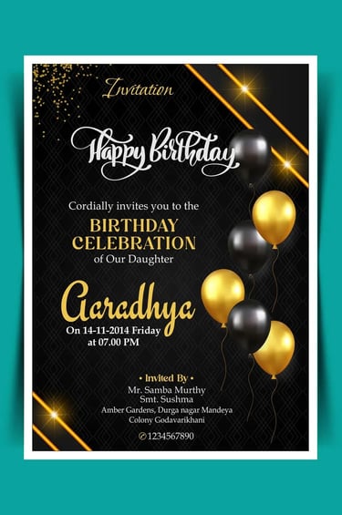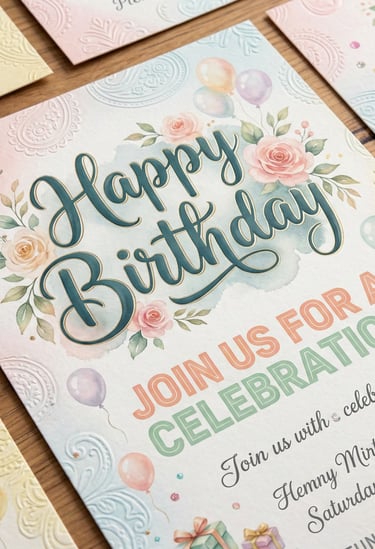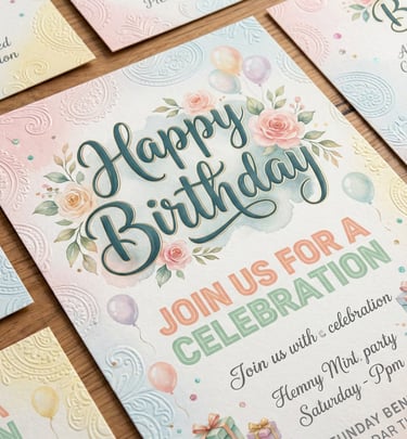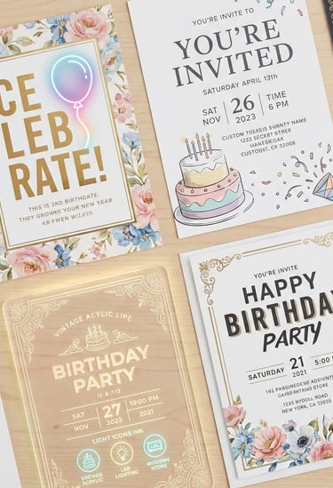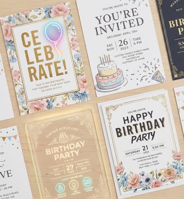 Announce your birthday party in style with elegant and eye-catching invitation cards. Crafted with premium designs and creative layouts, these invitations highlight every important detail while adding a touch of charm and sophistication, making your event feel truly special from the very beginning.