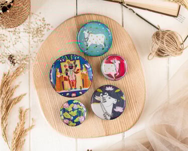 Our button magnets are produced using premium printing techniques to ensure sharp images, vibrant colors, and long-lasting durability. The surface is protected with a glossy coating that enhances the design and keeps it safe from scratches, fading, and moisture.