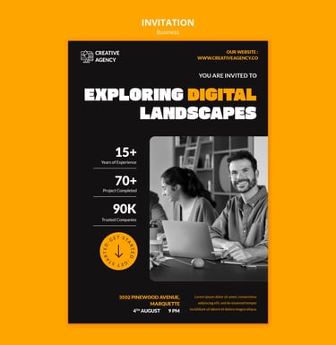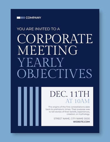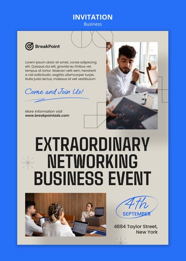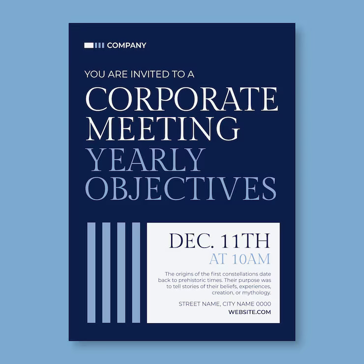 Create impactful first impressions with well-designed corporate invitation cards. Combining contemporary style with a professional touch, these invitations effectively communicate your event details, inviting clients, partners, and employees to join a memorable business event filled with networking, celebration, and success.