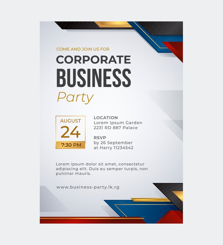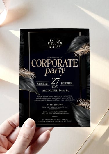 Announce your corporate events and business parties with sophisticated invitation cards that capture attention. Crafted with elegant themes and structured designs, these invites highlight key event details while creating anticipation, ensuring your guests feel valued and excited to attend your professional celebration.