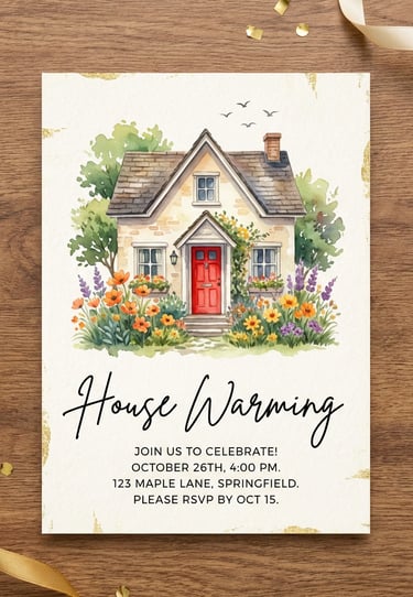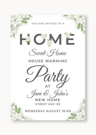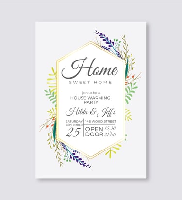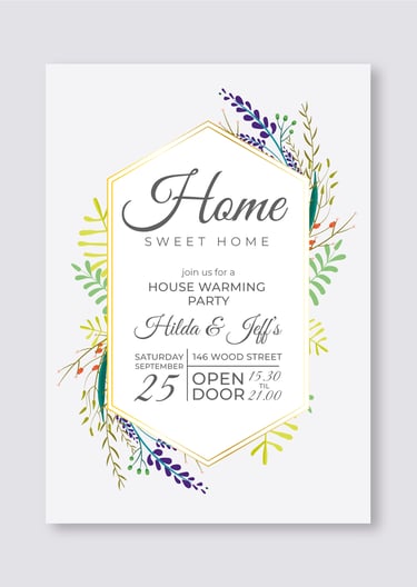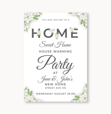Make your house warming event special with charming invitation cards that capture the essence of your new journey. With creative layouts, premium finishes, and thoughtful details, these invitations invite guests to celebrate your new home and create joyful memories in a welcoming atmosphere.