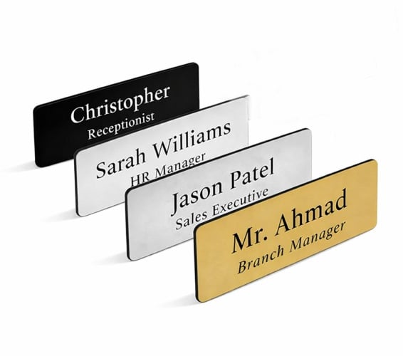 Custom name badges are essential for creating a professional and organized workplace environment. They help employees clearly display their names and designations, making communication easier and more personal for customers. Designed with your brand logo, colors, and style, name badges enhance brand visibility while maintaining a polished appearance. Ideal for offices, retail stores, events, and corporate settings, they are durable, customizable, and perfect for building trust and recognition.