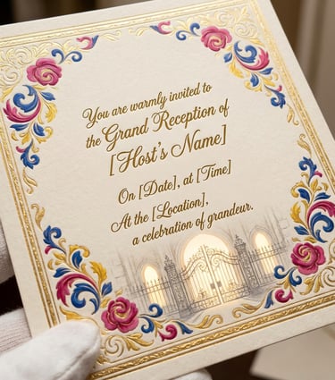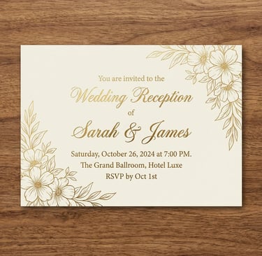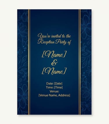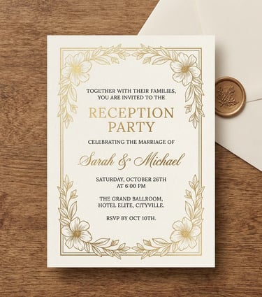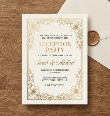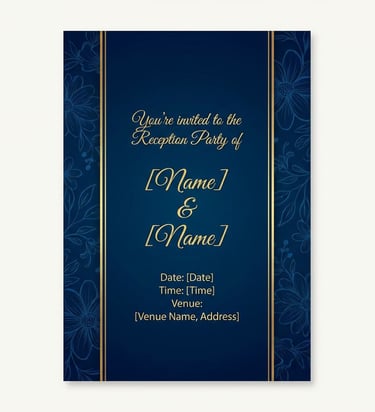 Announce your reception party with elegant invitation cards that reflect style and celebration. Designed with premium finishes and modern layouts, these cards beautifully highlight your event details while inviting guests to join an evening filled with joy, laughter, and unforgettable memories.