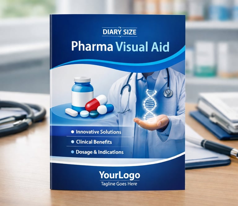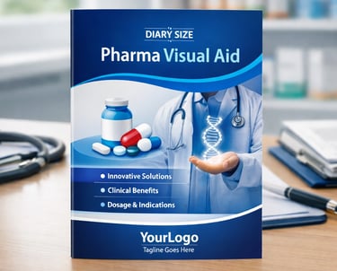 Diary size visual aids are portable and efficient tools widely used in pharmaceutical detailing. Designed in a compact diary-style format, they are easy to carry and ideal for on-the-go presentations. These visual aids help deliver product information in a clear, organized, and visually appealing manner. With premium printing, durable binding, and customizable designs, diary size visual aids enhance communication between medical representatives and healthcare professionals while reinforcing brand identity.