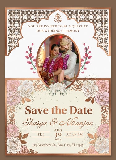 Share your joy with stunning wedding ceremony invitation cards designed to impress. With creative layouts, rich textures, and elegant typography, these invitations highlight every detail of your big day, ensuring your guests feel honored and excited to be part of your unforgettable wedding celebration.